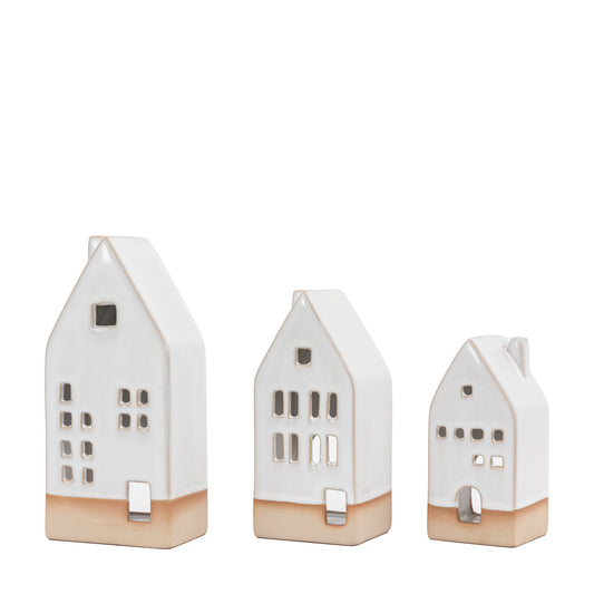 pearly white trio of tea light houses